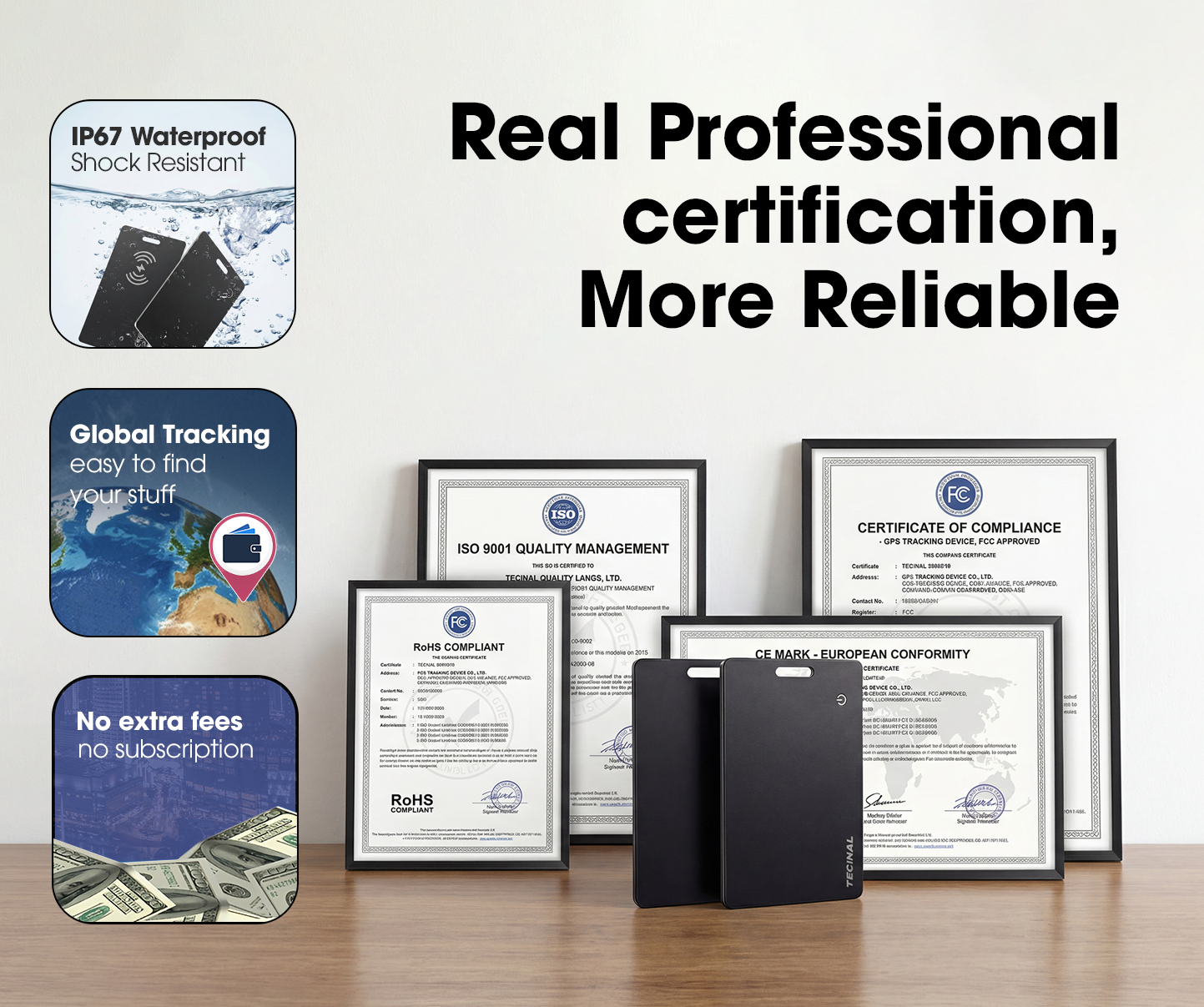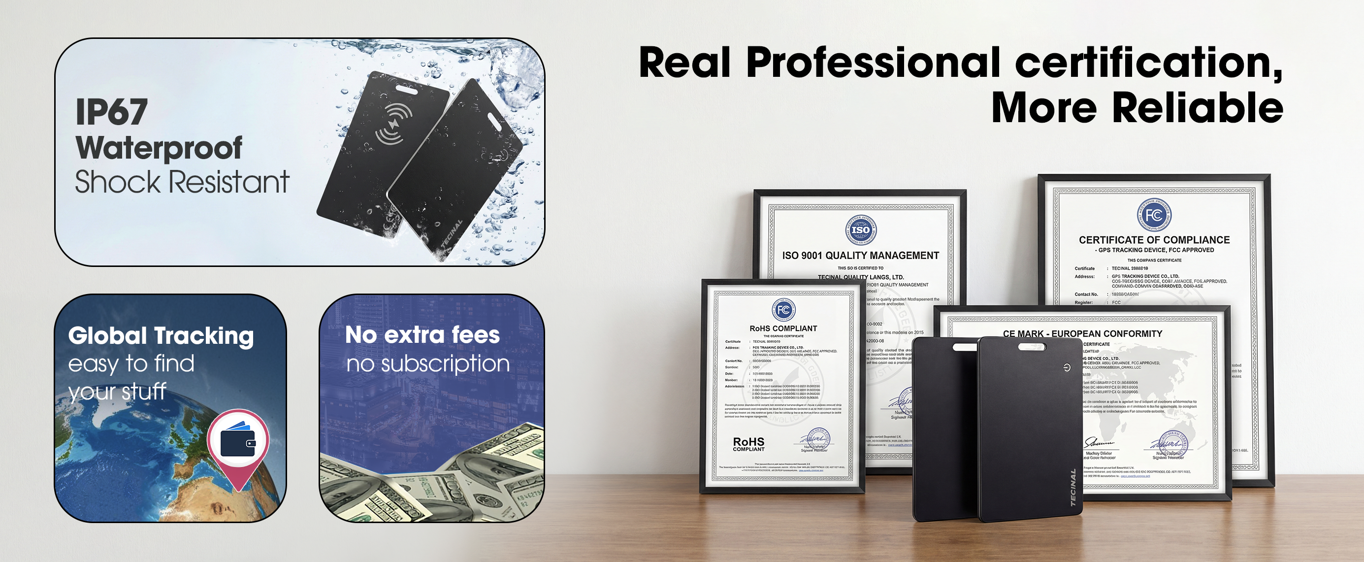 Ultra-thin, rechargeable, and designed for wallets, Tecinal™ WalletGuard fits where bulky AirTags and basic BLE trackers can’t — with seamless Apple Find My support built in.